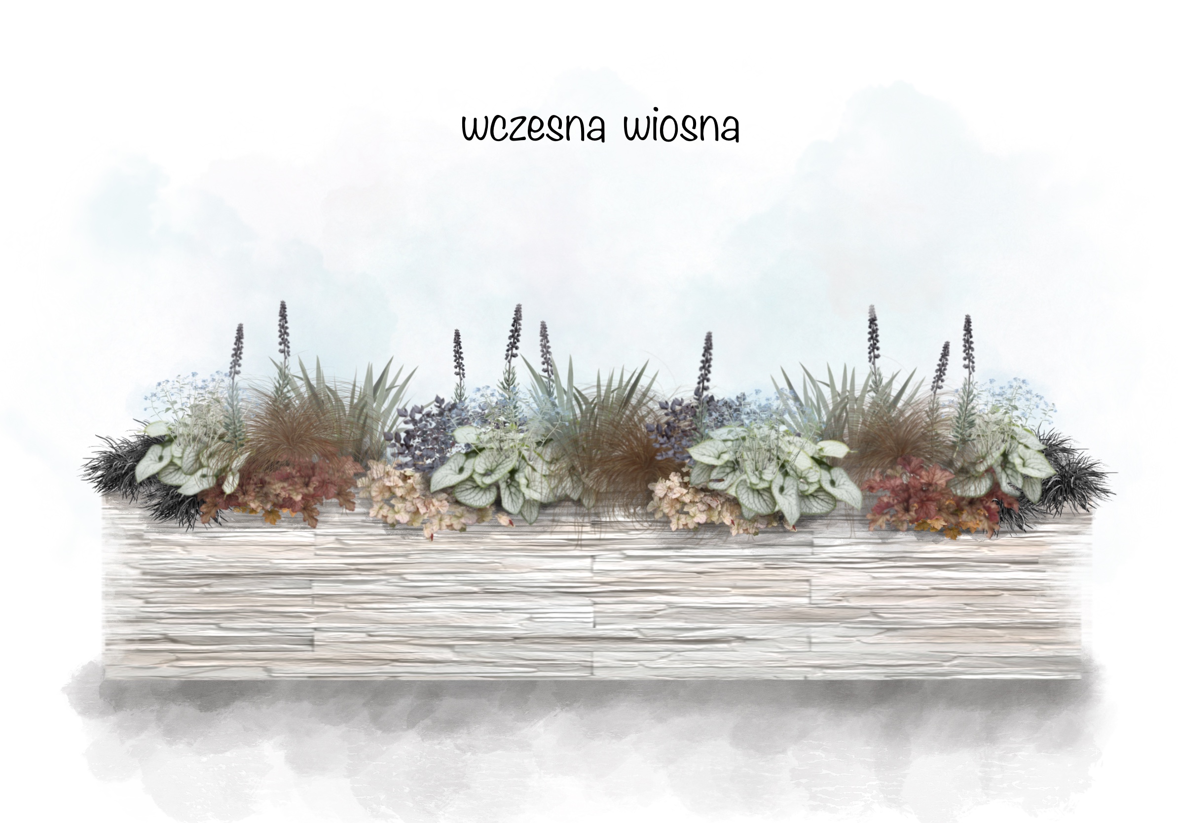 Projekt nr 3 - rabata wymiary stanowisko wymagania wodne wymagania glebowe wymagania pokarmowe pH podłoża 0,6 x 3,2 m słoneczne do półcień umiarkowane zróżnicowane zróżnicowane tolerancyjne cena 149 zł kup projekt